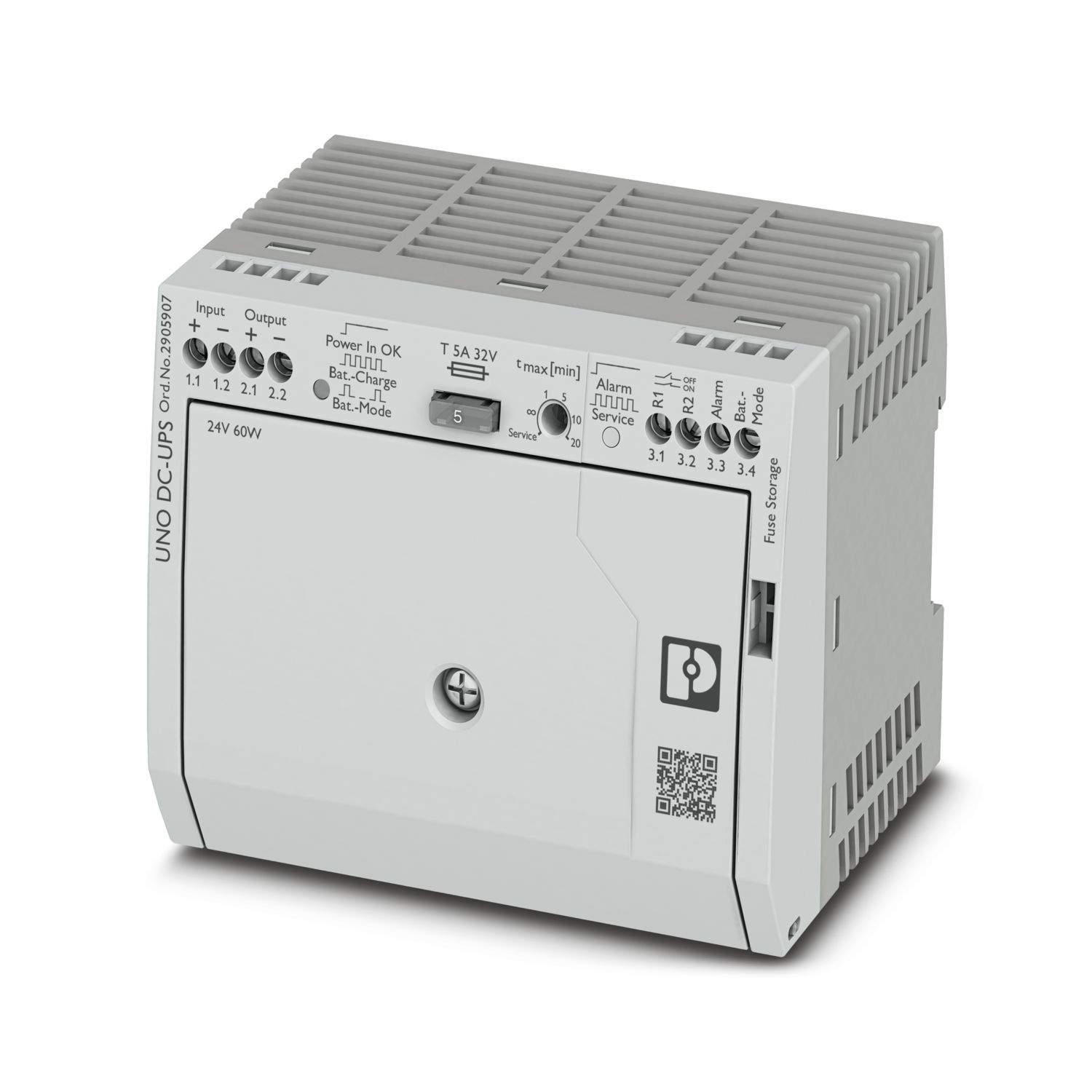 Phoenix UNO-UPS/24DC/24DC/60W-uninterruptible power supply 2905907, uninterruptible power supply with built-in battery, lead AGM,VRLA technology, 24V DC, 2x 0.8 Ah.