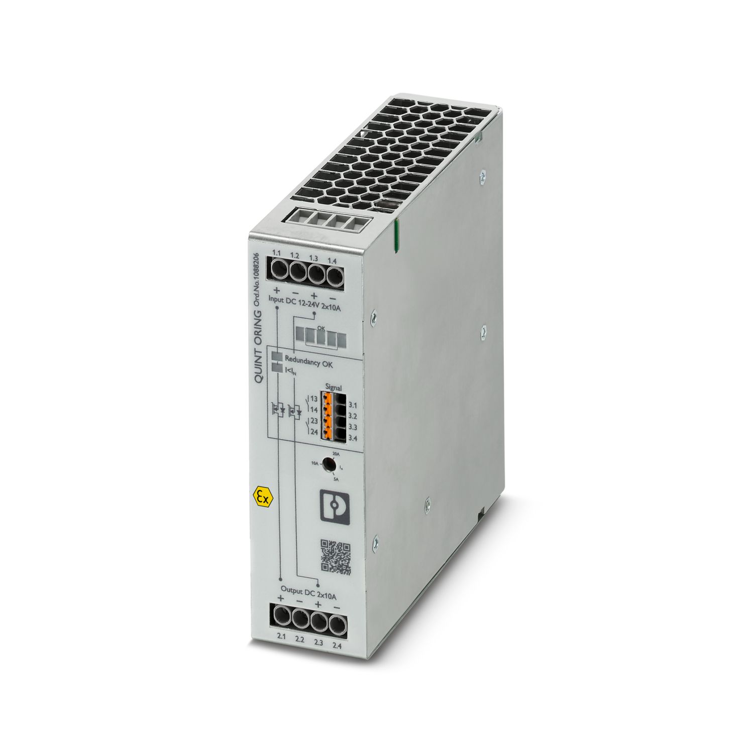 Phoenix QUINT4-ORING/12-24DC/2X10/2X10-Redundant module 1088206, active redundant module QUINT ORING adopts decoupling MOSFET, ACB Technology, DIN rail installation, 12V DC ... 24V DC, 2x 10 A, 2x 10 A