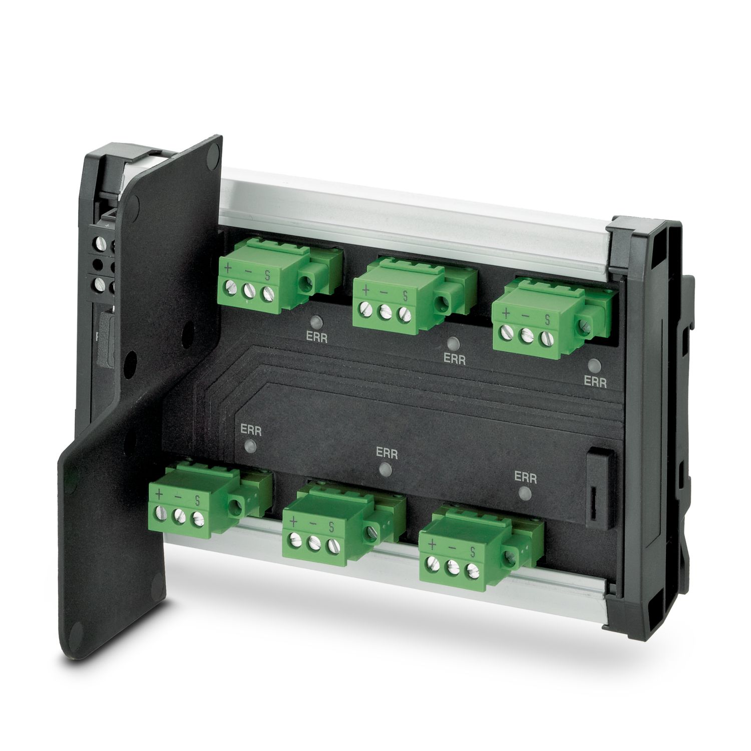 Phoenix FB-6SP-Device Coupler 2316307, a device coupler for Foundation Fieldbus and PROFIBUS PAs, with six terminal branches, connected to fieldbus terminal devices.